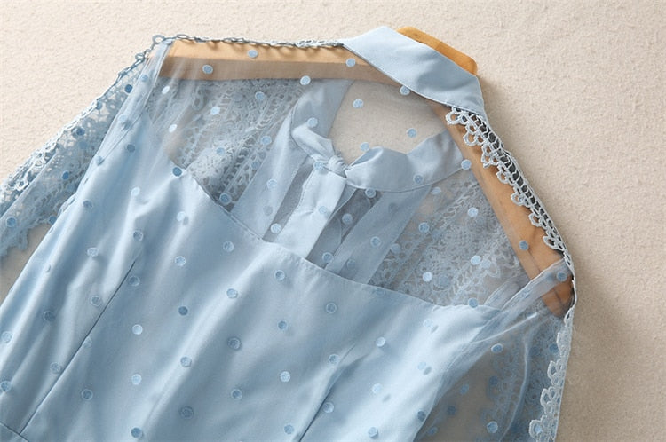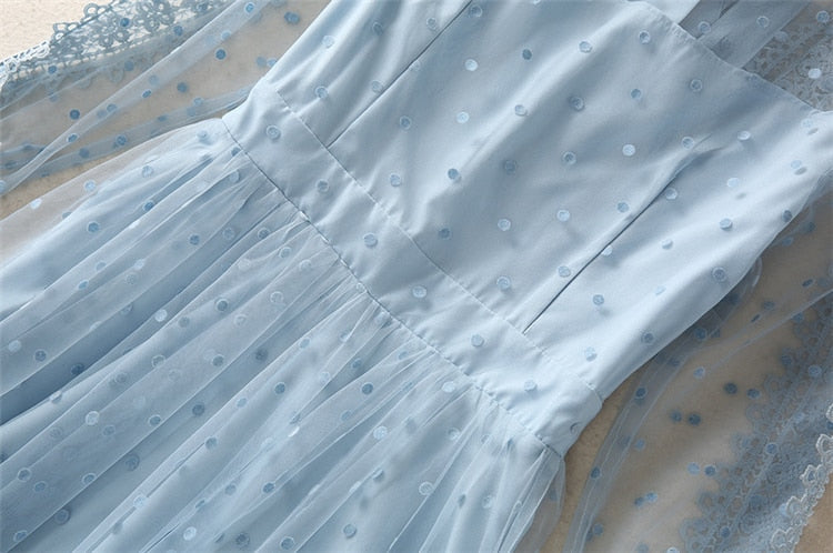 This luxurious dress is crafted from high quality materials to ensure an elegant, vintage, and chic look. Featuring an intricate embroidery design in a beautiful blue hue, the long sleeve and princess design creates an effortless, timeless silhouette.